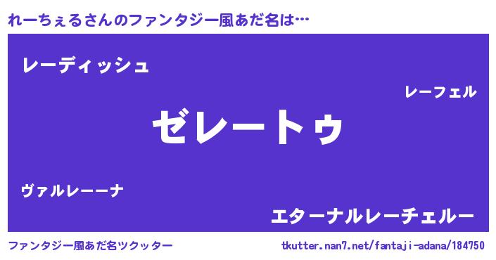 | 意味不明あだ名 | 『自称れーちぇる』『永久保存れーちぇる』 |