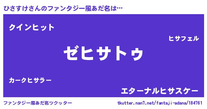 | ヒーロー風カッコイイあだ名 | 『超時空戦士ヒサスケ』『炎刃騎士ヒサ』 |