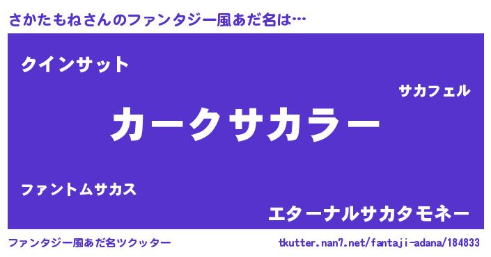 | 男性向けラノベタイトル風あだ名 | 『うちのさかたもねが世界を掌握している!』 |