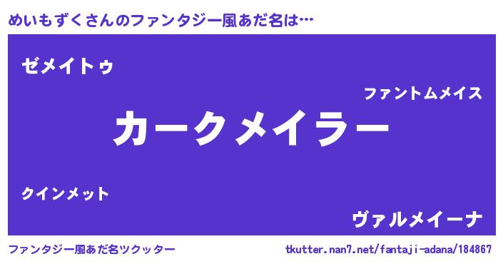| 意味不明あだ名 | 『自称めいもずく』『永久保存めいもずく』 |