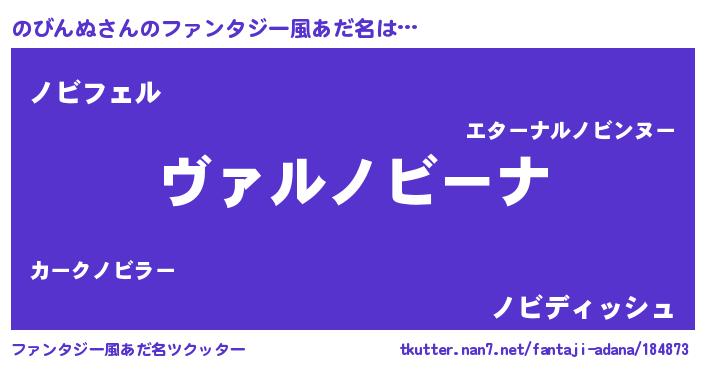 | 男性向けラノベタイトル風あだ名 | 『魔弾の王とのびんぬ』『のびんぬの憂鬱』 |