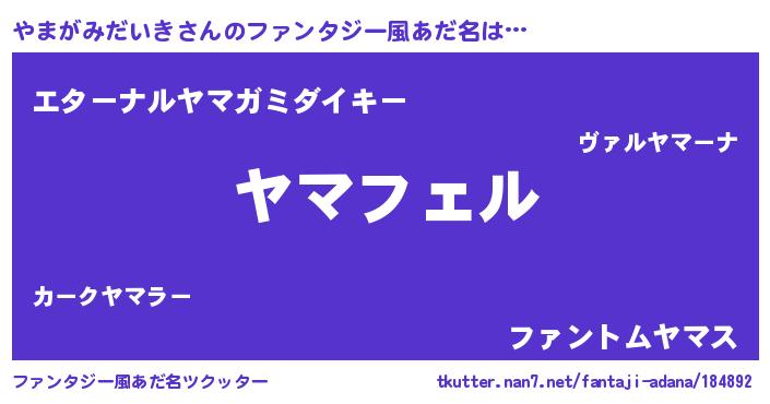 | 男性向けラノベタイトル風あだ名 | 『ヤマガミダイキアートオンライン』 |