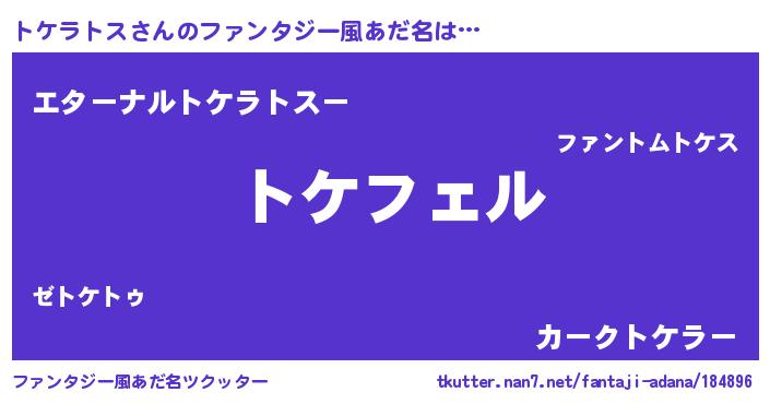 | ヒーロー風カッコイイあだ名 | 『スーパートケラトス』『炎刃騎士トケ』 |