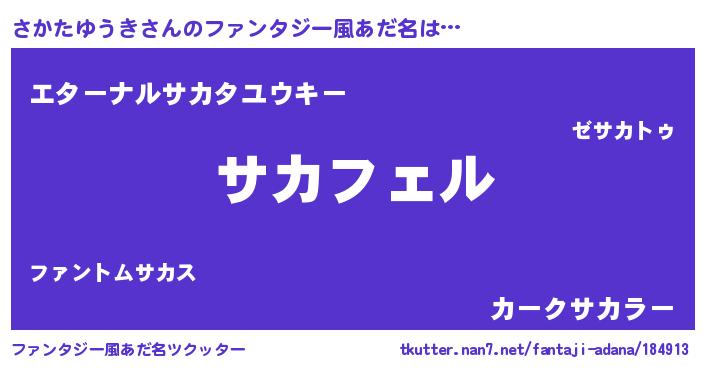 | ヒーロー風カッコイイあだ名 | 『スーパーサカタユウキ』『銀牙騎士サカ』 |