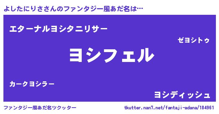 | ポケモン風あだ名 | 『ヨシゴンZ』『ヨシチュウ』 |