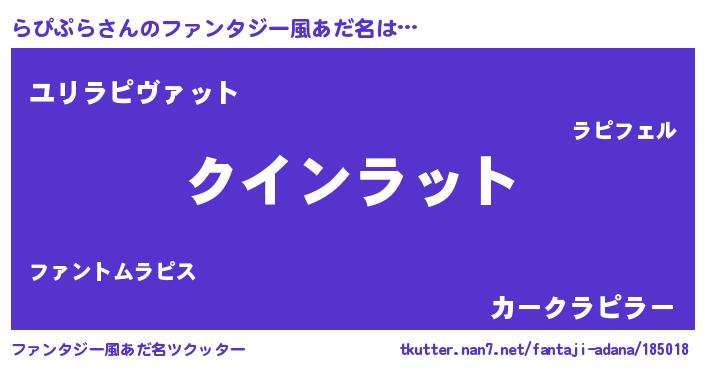 | ヒーロー風カッコイイあだ名 | 『慈愛の使者らぴぷら』『天弓騎士ラピ』 |