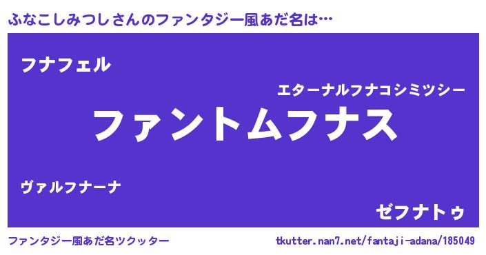 | 意味不明あだ名 | 『とにかく怪しいふなこしみつし』 |