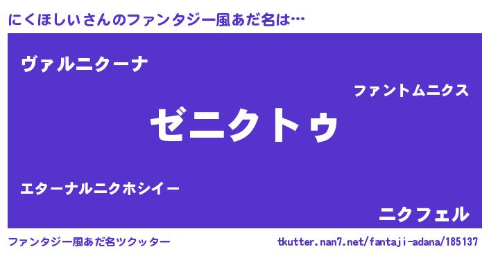 | 男性向けラノベタイトル風あだ名 | 『Re:にくほしいから始める異世界生活』 |