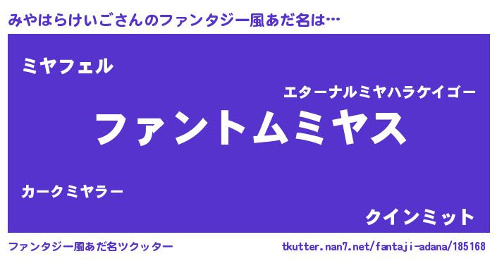 | ヒーロー風カッコイイあだ名 | 『銀牙騎士ミヤ』『ネオミヤハラケイゴ』 |