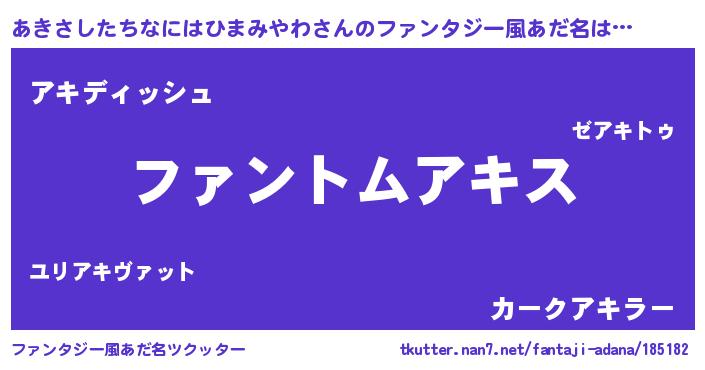 | 男性向けラノベタイトル風あだ名 | 『あきさしたちなにはひまみやわに滅ぼされるだけの簡単なお仕事です』 |