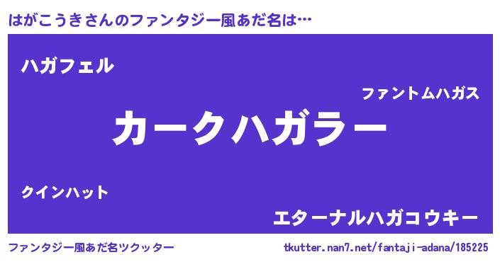 | 胡散臭い通販商品みたいなあだ名 | 『モテモテ間違いなし水晶球…その名も「はがこうき」』 |