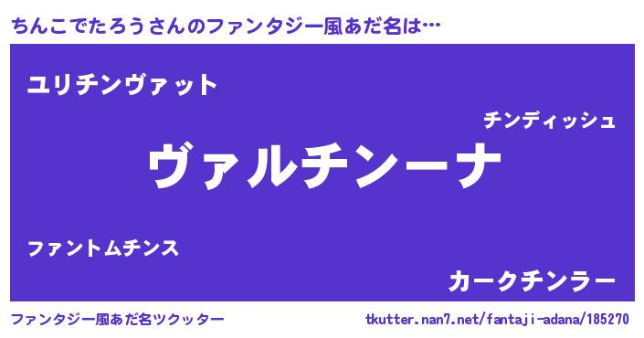 | 女子向けラノベタイトル風あだ名 | 『乙女ゲームの破滅フラグしかない悪役ちんこでたろうに転生してしまった…』 |