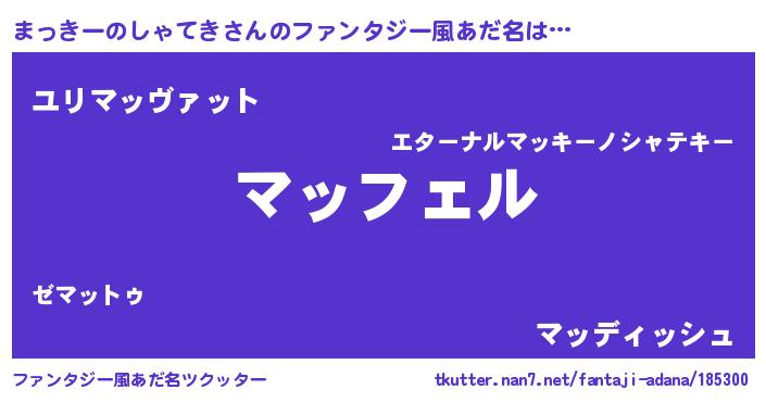 | 男性向けラノベタイトル風あだ名 | 『まっきーのしゃてきに滅ぼされるだけの簡単なお仕事です』 |