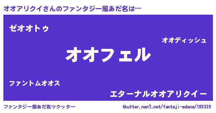 | 男性向けラノベタイトル風あだ名 | 『オオアリクイアートオンライン』 |