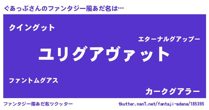 | 男性向けラノベタイトル風あだ名 | 『ぐあっぷ~年齢イコール彼女いない歴の魔法使い~』 |