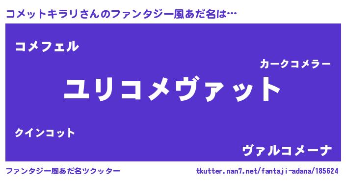 | 男性向けラノベタイトル風あだ名 | 『転生したらコメットキラリだった件』 |