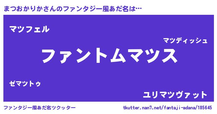 | 女子向けラノベタイトル風あだ名 | 『まつおかりかの卵を拾いまして』 |