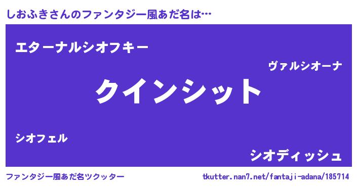 | 男性向けラノベタイトル風あだ名 | 『おまえをオタクにしてやるから、俺をしおふきにしてくれ! 』 |