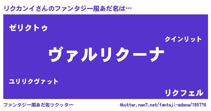 | 男性向けラノベタイトル風あだ名 | 『この素晴らしい世界にリクカンイを!』 |