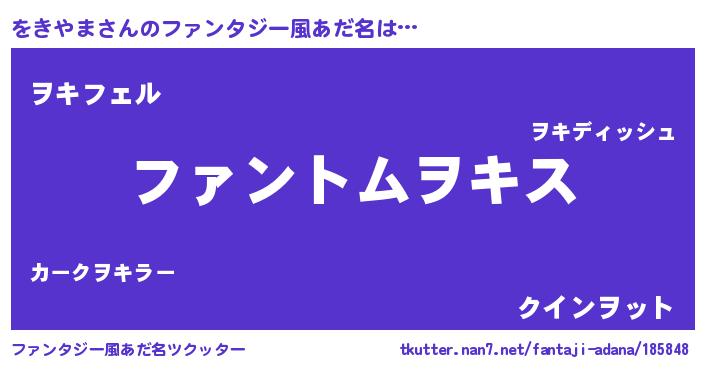 | 男性向けラノベタイトル風あだ名 | 『をきやまの嫁は女の子じゃないと思った?』 |
