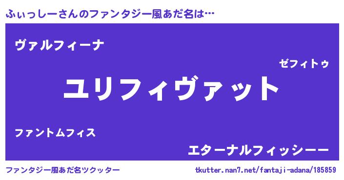 | 男性向けラノベタイトル風あだ名 | 『転生したらふぃっしーだった件』 |