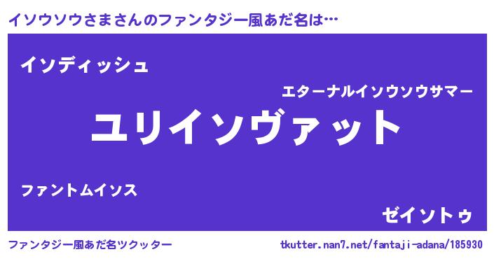 | 男性向けラノベタイトル風あだ名 | 『イソウソウサマスレイヤー』 |