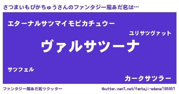 | 意味不明あだ名 | 『住所不定無職さつまいもぴかちゅう(12歳)』 |