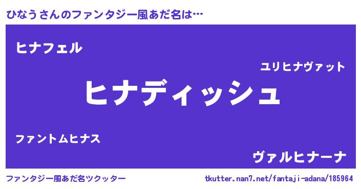 | 男性向けラノベタイトル風あだ名 | 『ひなうという概念が存在しない退屈な世界 』 |