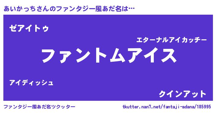 | ヒーロー風カッコイイあだ名 | 『炎刃騎士アイ』『最強戦士アイカッチ』 |