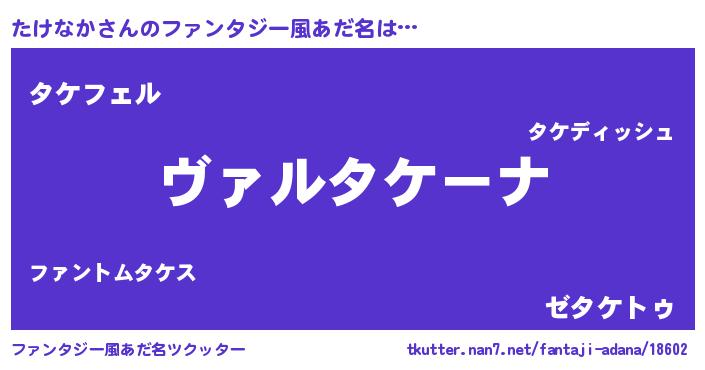 | 男性向けラノベタイトル風あだ名 | 『たけなかに滅ぼされるだけの簡単なお仕事です』 |