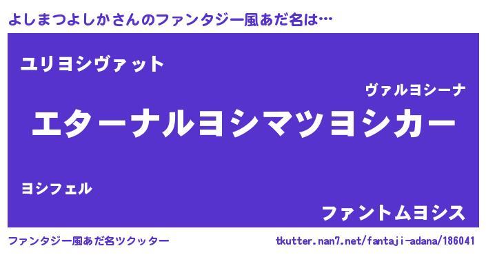 | 欧米人風あだ名 | 『よしまつよしかクリステル』 |