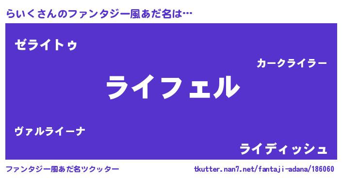 | ヘコむあだ名 | 『らいっふぃ~』『らいく(笑)』 |