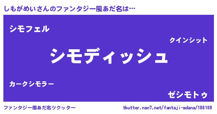 | ヘコむあだ名 | 『しもがめい(苦笑)』『しもっふぃ~』 |