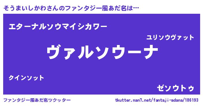 | 女子向けラノベタイトル風あだ名 | 『悪役そうまいしかわに転生したようですが、知った事ではありません』 |
