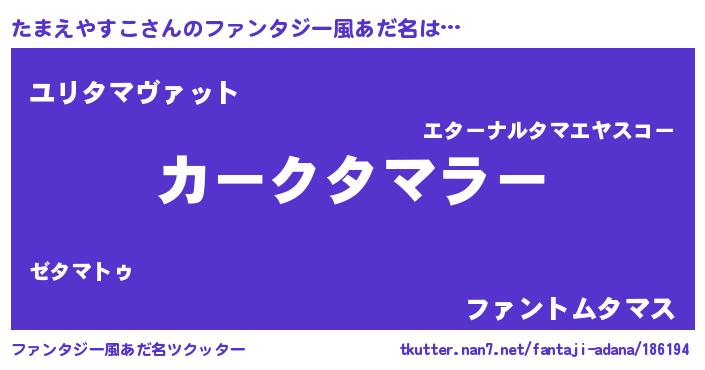 | ヒーロー風カッコイイあだ名 | 『幻影騎士タマ』『最強戦士タマエヤスコ』 |