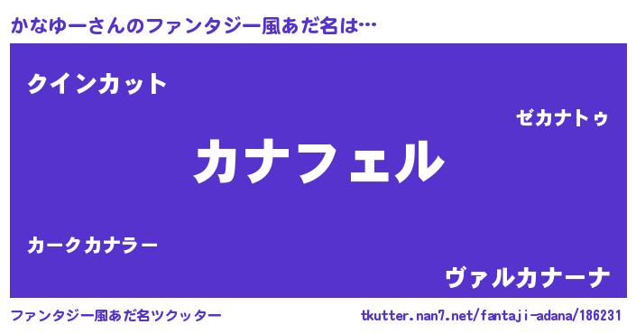 | 意味不明あだ名 | 『ペロリンかなゆー』『自称かなゆー』 |