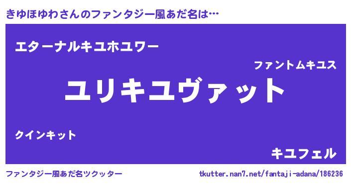 | 男性向けラノベタイトル風あだ名 | 『キユホユワスレイヤー』 |