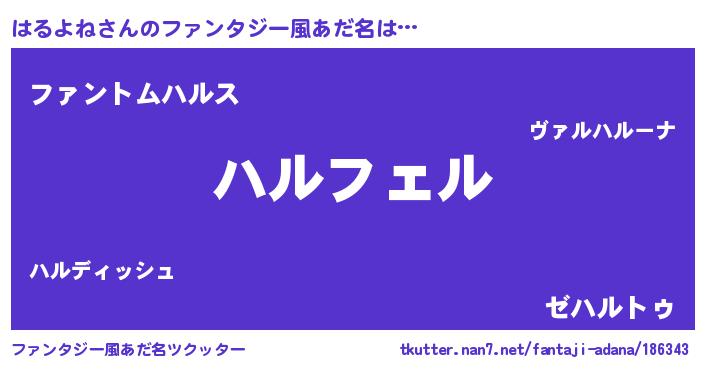 | ヒーロー風カッコイイあだ名 | 『スーパーハルヨネ』『幻影騎士ハル』 |