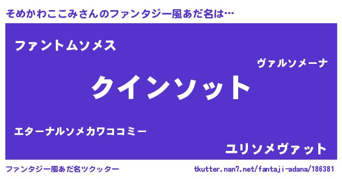 | 意味不明あだ名 | 『眠気覚ましガムそめかわここみ味』 |