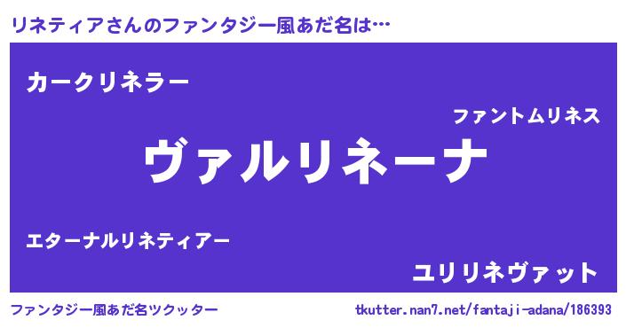 | 女子向けラノベタイトル風あだ名 | 『悪役リネティアに転生したようですが、知った事ではありません』 |