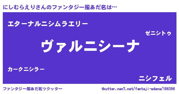 | 意味不明あだ名 | 『住所不定無職にしむらえり(68歳)』 |