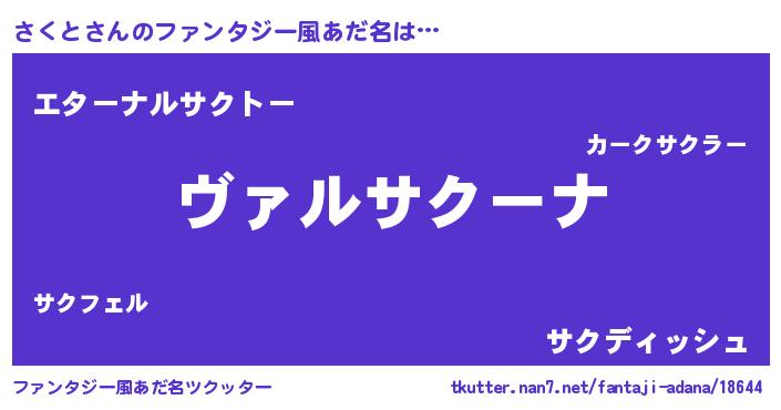 | 男性向けラノベタイトル風あだ名 | 『魔弾の王とさくと』 |