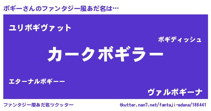 | ヘコむあだ名 | 『ボギー(苦笑)』『つくし』『ボギを』 |