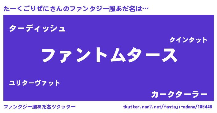 | 男性向けラノベタイトル風あだ名 | 『たーくごりぜにの嫁は女の子じゃないと思った?』 |