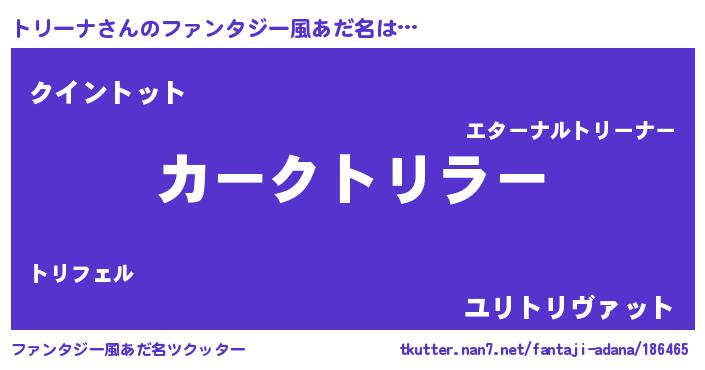 | 男性向けラノベタイトル風あだ名 | 『うちのトリーナが世界を掌握している!』 |