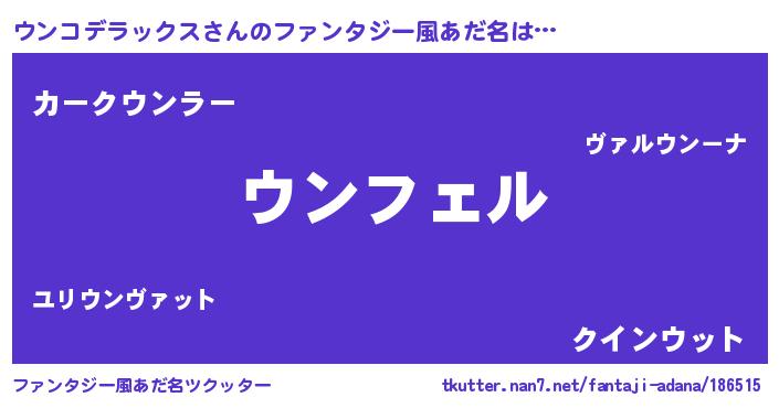 | 自動車の名前っぽいあだ名 | 『ウンティマ』『フェウーン』『ウンR』 |