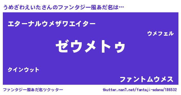 | 男性向けラノベタイトル風あだ名 | 『Re:うめざわえいたから始める異世界生活』 |