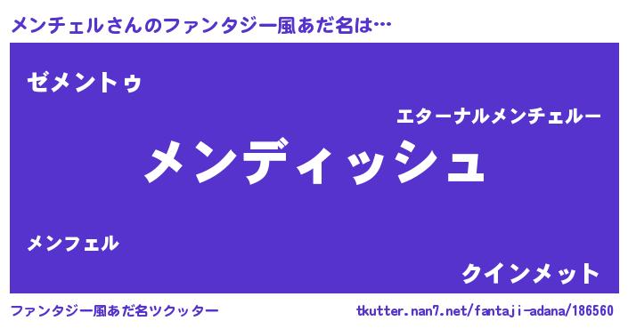 | 意味不明あだ名 | 『永久保存メンチェル』『自称メンチェル』 |