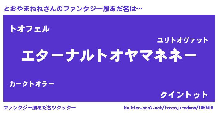 | 意味不明あだ名 | 『とおやまねねフォーエバー』 |