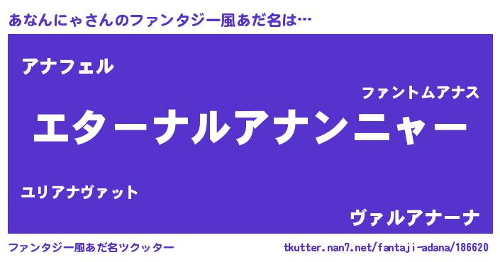 | 意味不明あだ名 | 『あなんにゃフォーエバー』 |